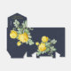 Design features a printed coloured with floral element in shades navy blue and lemon yellow over foliage leaves and roses flowers on a navy and yellow kraft watercolor background.. Great for your wedding celebrations!
