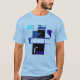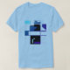 A sophisticated, contemporary look, with some inspiration from the Mid-century Modern style. This retro inspired abstract design in shades of dark blue, aqua, and black is pictured here on a light blue t-shirt (other colours and styles available). An understated, jazzy style for your everyday or casual wear. This is a contemporary, creative look, suggestive of tribal art, a mosaic tile pattern, or modern art image, to perk up your casual and everyday wear, whether hanging out at home or with friends, playing sports, or going about town. Given the shirt lends an artistic vibe and individualised style, this contributes to a feeling of being "put together," especially invigorating for those who work remotely and/or spend a lot of time at home.