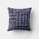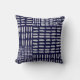 Modern throw pillow features an abstract broken line geometric art pattern in a navy blue colour palette with grey and white accents. A stylish modern global-inspired pattern; one design of a coordinating collection.