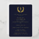 A formal but modern graduation invitation for any type of medical qualification. Featuring the Asclepius symbol surrounded by a laurel wreath in a foil colour of your choice. All text is also foil pressed and is customisable, so the font size, style and placement can be changed. The back has been left plain, but if you would prefer to include a photo on the back of the card, just replace the coloured background with your own photo. The design is available in other colours in my store, in a non-foil version, in a versions with a Caduceus symbol and for specific medical qualifications - see my Collections.
