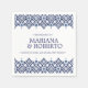 Elegant and sophisticated, this design features a border decoration of spanish tile or azulejos in mediterranean inspired watercolor palette of shades of navy blue, indigo and grey overa white background.