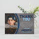 Navy Blue and Baby Blue Chalkboard Graduation Thank You Card - 1 Photo - Grey Chalkboard