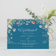 This navy blissful boho wildflower elopement announcement has a beautiful modern design. The design features pink, purple, blush, yellow, dusty blue, red, burgundy meadow wild flowers assembled in a seamless and delightful floral pattern, evoking natural beauty.