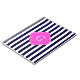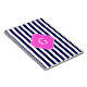A stylish, modern, preppy striped pattern in navy blue and white. Customise the hot pink quatrefoil label with your monogram, name or other text. (Click on "Customise it" to adjust font sizes, colours, etc.)