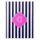 Navy Blu White Stripe Hot Pink Quatrefoil Monogram Spiral Notebook