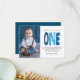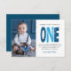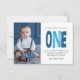 Modern, simple and elegant boy first birthday thank you card. Design featuring trendy script one , thank you message and a photo.