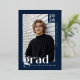 Celebrate a major milestone with this modern, editorial-style graduation announcement designed for a refined, masculine look. Featuring a classic blue background, white typography, and real silver foil accents, this double-sided graduation card delivers a timeless yet fashion-forward presentation. The template allows you to personalize the class year, graduate’s name, and school on the front with your main photo, while the back includes space for a custom message and a 3-photo collage. Designed for graduates who want a clean, confident announcement with premium foil detailing and modern typography. © Kimbellished, LLC