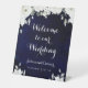 Navy Blue 2 White Peony Welcome To Our Wedding Pedestal Sign
