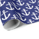 Navy Blue 5c White Nautical Anchors Pattern Wrapping Paper