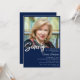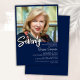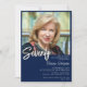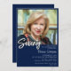 Photo modern minimalist navy blue and white 70th birthday party invitation for a fun birthday party. Age can be changed. This invitation is simple and elegant, adult milestone birthday invitation for men and women. The navy blue and white background colour can be changed to any colour of your choice using the design tool.