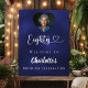 A welcome sign for a 80th birthday party. A navy blue, uneven coloured background. Personalise and add a name and photo. Heart shaped photo frame.