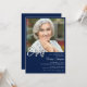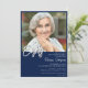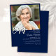 Photo modern minimalist navy blue and white 80th birthday party invitation for a fun birthday party. Age can be changed. This invitation is simple and elegant, adult milestone birthday invitation for men and women. The navy blue and white background colour can be changed to any colour of your choice using the design tool.