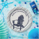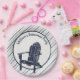These paper plates are ready to be personalised with your own custom message. They feature a border of diagonal stripes in navy blue, charcoal grey and light aqua blue against an eggshell white background and an illustration of a wooden Adirondack chair in navy blue making them perfect for outdoor gatherings or parties with a more laid back feel.