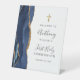 Navy Blue Agate Gold First Holy Communion Welcome Pedestal Sign