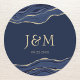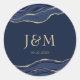 Navy Blue Agate Marble Gold Glitter Wedding Classic Round Sticker