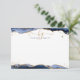 Navy Blue Agate Monogram Fancy Script Gold Glitter Card