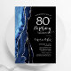 Navy Blue Agate Silver Black 80th Birthday Invitation