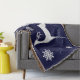 Navy Blue All is Calm All is Bright holiday throw blanket, features a solid navy blue background, white text that reads All is Calm All is Bright, and a silhouette white deer. This pretty holiday throw is a great gift for yourself or someone you love and will become part of your Christmas tradition!