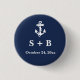 Navy Blue, anchor, nautical Wedding favour. Elegant, modern script, typography button. Personalise with your Names and the date of the Wedding.