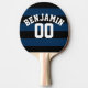 Navy Blue and Black Rugby Stripes Name Number Ping Pong Paddle