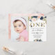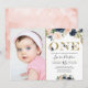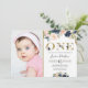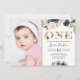 Navy Blue and Blush Pink Floral 1st Birthday Photo Invitation