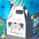 A beautifully crafted favour box featuring an elegant blend of navy blue and blush pink florals,