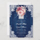 Navy Blue and Blush Wood Mason Jar Floral Wedding Invitation