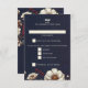 Navy Blue and Burgundy Floral Wedding RSVP Card