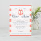 Navy Blue and Coral Stripe Nautical Wedding Invitation