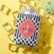 Navy Blue and Coral Trellis Monogram Can Cooler