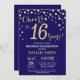 Navy Blue and Gold 16th Birthday Diamond Invitation