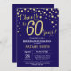 Navy Blue and Gold 60th Birthday Diamond Invitation