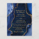 This elegant and glamourous wedding invitation features a navy blue agate marble background with faux gold glitter accents. The text combines handwritten script and modern sans serif fonts for a classy and sophisticated look. This will be perfect for autumn fall and winter weddings.