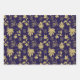 Navy Blue and Gold Coloured Plants and Leaves Wrapping Paper Sheet