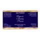 This elegant product label for cosmetic bottles features a navy blue background with faux gold foil borders. This label contains space for your product name, business name, product weight, ingredients, instructions, social media, and business address. This label measures 3.75 inches by 2 inches (95 mm by 51 mm) and is suitable for bottles with a diameter of 1.2 inches (31 mm) or more such as 2 to 4 oz (60 to 120 ml) bullet, cylinder, and boston round bottles. It can also be used for cosmetic jars and other types of cosmetics packaging.