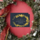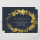 Formal save the date cards featuring real metallic foil. Vintage-style florals frame your details. Gold on dark blue.