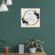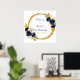 Navy Blue and Gold Elegant Flower Birthday Party Poster