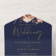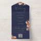 Navy Blue And Gold Floral QR Code Fall Wedding All In One Invitation