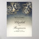 Vintage floral navy blue and gold wedding welcome sign poster