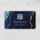 Navy Blue and Gold Geode Agate Stone QR Code Business Card