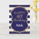 Navy Blue and Gold Glitter confetti 40th Birthday Card with personalised name. For further customisation, please click the "Customise it" button and use our design tool to modify this template.