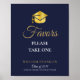 An elegant graduation party favours sign personalised in chic typography on a navy blue background. Designed by Thisisnotme©