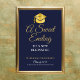 An elegant graduation party favours sign persoanlized in chic typography on a navy blue background. Designed by Thisisnotme©