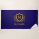 Navy Blue and Gold Personalised Monogram Name Beach Towel