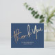 Navy Blue and Gold Thank You Elegant Universal Postcard featuring modern script calligraphy text in faux gold foil