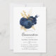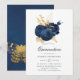 Navy Blue and Gold Vintage Rose Quinceañera Invitation
