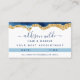 Navy Blue And Gold Watercolor Appointment Card. Elegant Navy Blue And Gold geometric hand lettered style calligraphy script professional business design. Perfect for makeup artists, hair stylists, cosmetologists, and more!