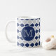 Navy Blue and Grey Quatrefoil Monogram Coffee Mug