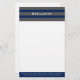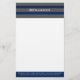 Navy Blue and Grey Rugby Stripes with Custom Name Stationery