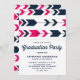 Navy Blue and Hot Pink Modern Arrows Graduation Invitation